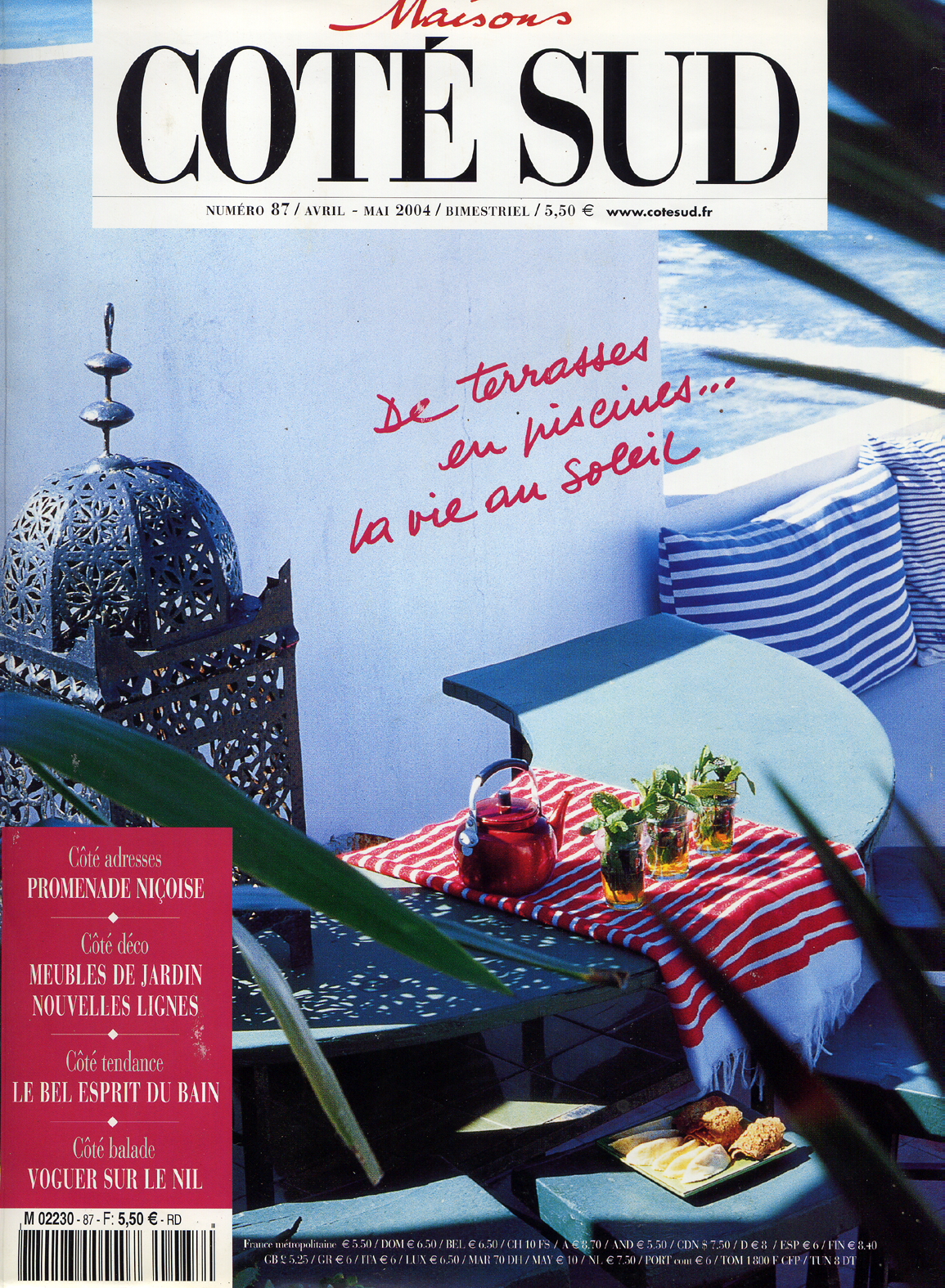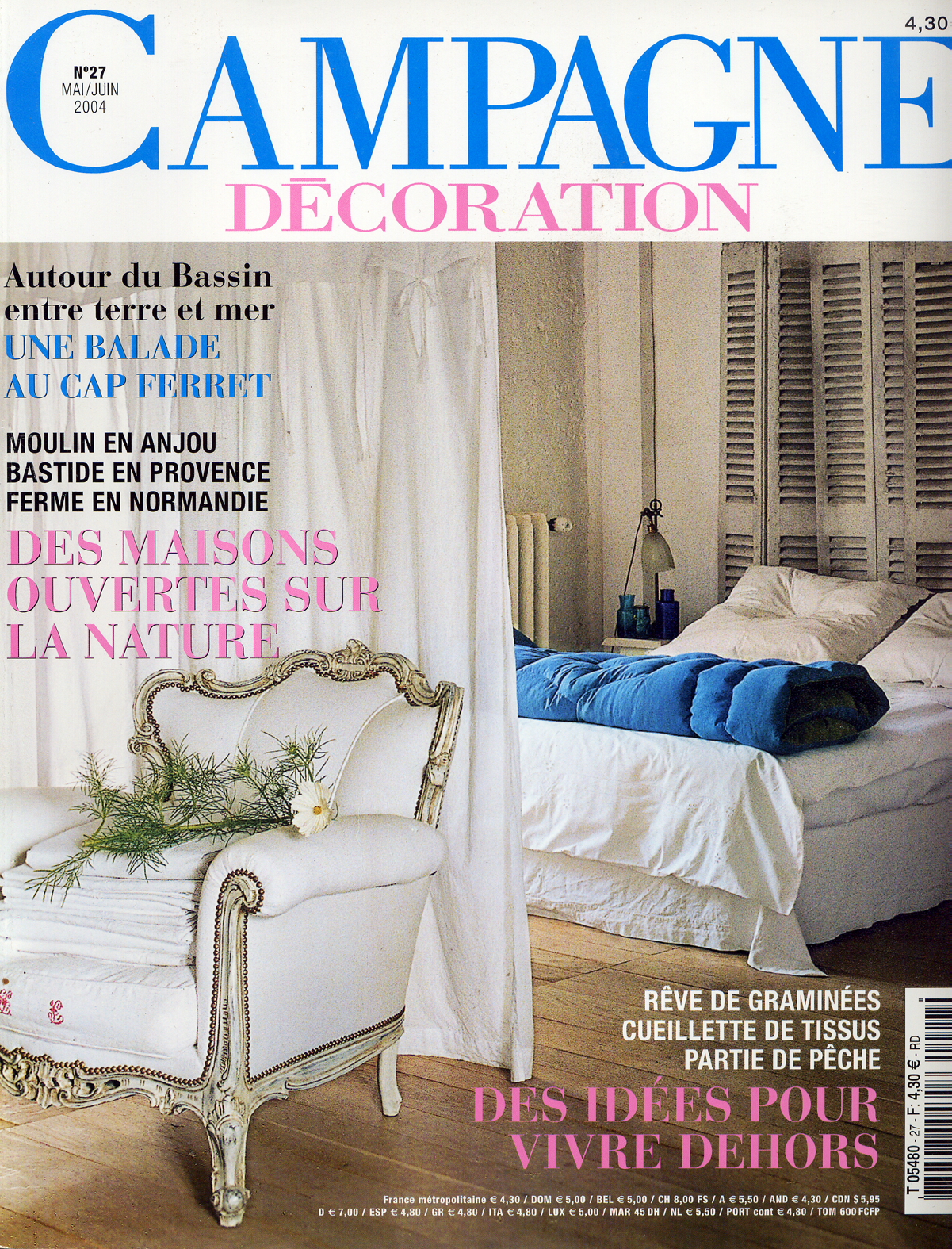 Marie Claire Idées, Maisons Côté Ouest, Maisons Côté Sud, Atmosphère, Campagne Décoration, Mon Jardin Ma Maison, L’Art de Voyager, Le Figaro, le M, Maison Française, The World of Interiors, Country Living, Homes & Gardens, House & Gardens, Red, Irish Home, IO Donna, Mia Casa, Antiquariato, Gaël Maison, Idées Home, J.V., Residence, More Than Classic, Seasons, Ariadne, Vogue Living… Frankfurter Allgemeine Zeitung, Southern Accent, Salt…